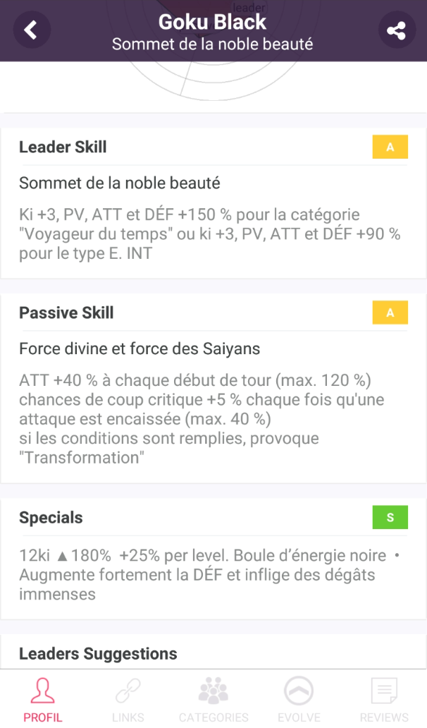 Enfin, en bas de page Dokkaner vous proposera une sélection de Leader possible à intégrer pour du Team Building. Les cartes sont cliquables pour permettre d'accéder directement soit au TeamBuilder, soit au détail du personnage.